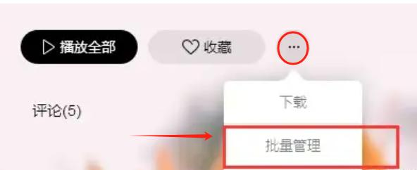 2. 点击歌单右侧“…”(更多选项)→“批量管理”,勾选全部歌曲。