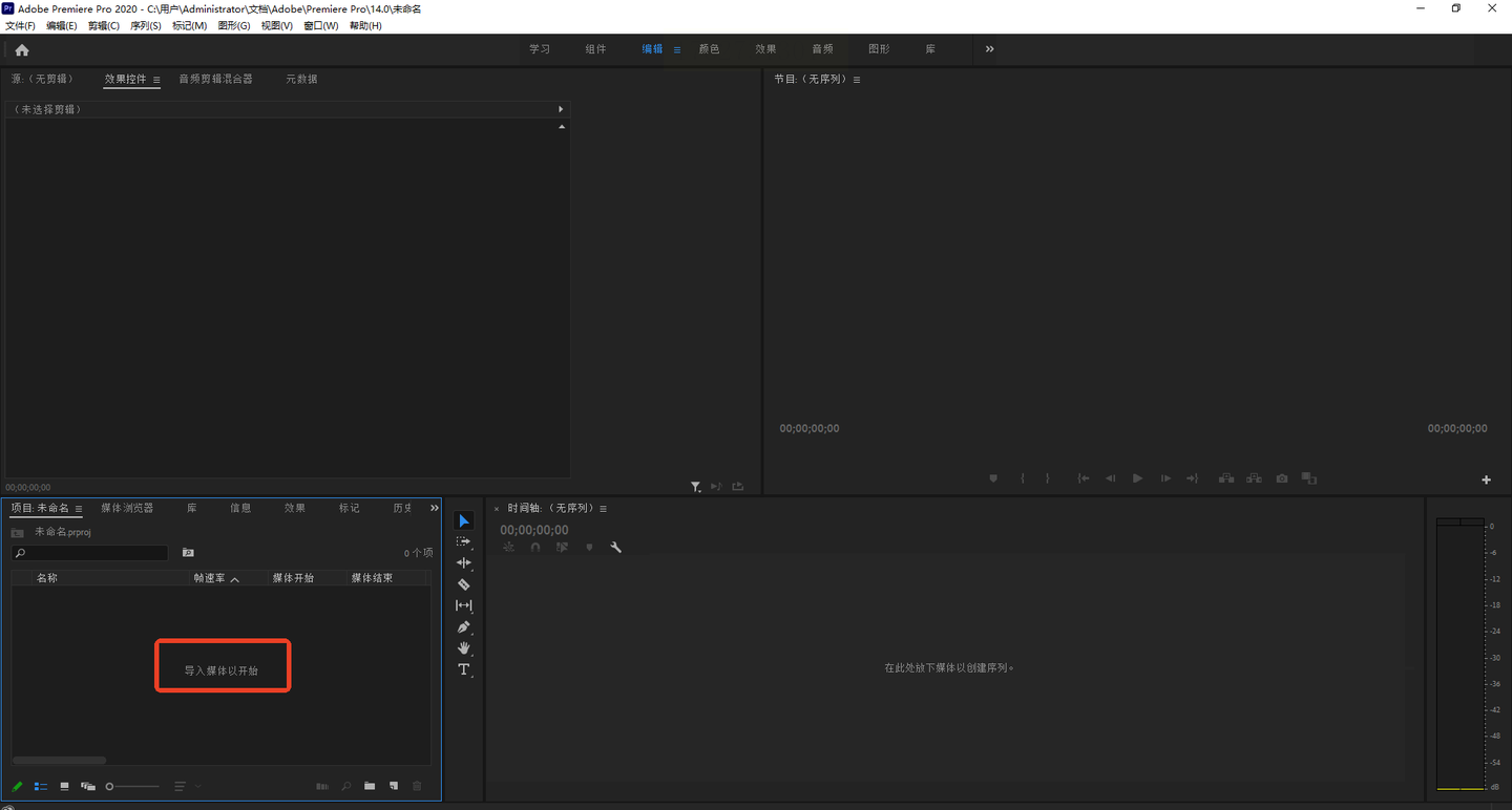 步骤一:打开PR软件,新建一个项目,然后导入MP3音频文件到素材库。