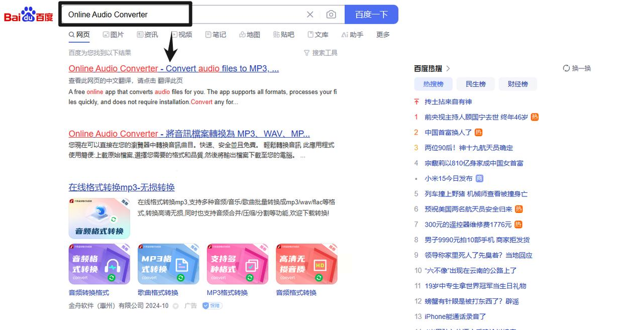 在网站首页找到“Audio converter”或类似标识的选项,点击进入。