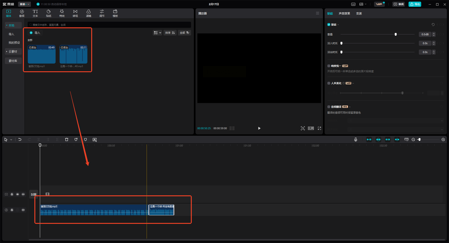 答:用《汇帮音频大师》进行基本合并是直接拼接的。如果你需要添加间隔或淡入淡出等过渡效果,可以使用像剪映这类带有音轨编辑功能的软件,在时间轴上手动添加。