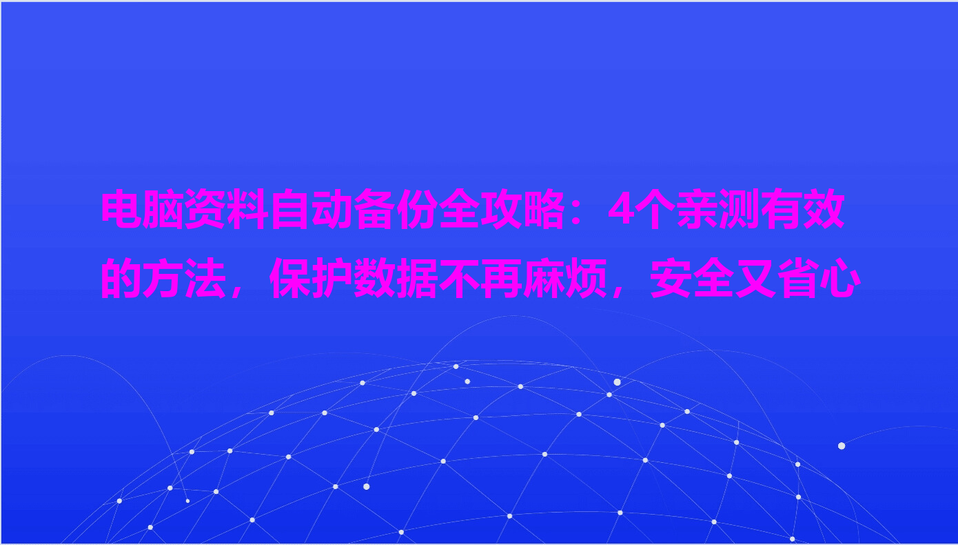 今天咱们就来好好聊聊电脑数据备份这件事。我猜你可能知道要备份,但总觉得麻烦,或者不知道从哪儿下手。别担心,这篇文章就是为你准备的。我会手把手教你4种自动备份的方法,从最简单的软件操作到稍微高级一点的命令行技巧,保证总有一款适合你。