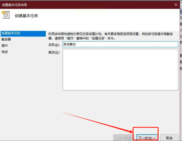 右侧操作栏里,点“创建基本任务”。给任务起名,比如“自动备份文档”。描述可以写详细点,方便以后查看。