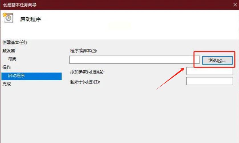 选“启动程序”。然后点浏览,找到你的备份程序。可能是汇帮软件的可执行文件,也可能是其他工具的启动程序。