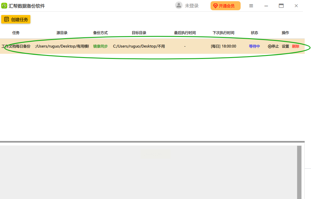 你可以在"任务列表"里看到刚创建的任务,还能随时暂停或删除。要是备份过程中出问题,软件会发弹窗提醒你,日志里也能看到每次备份的详细结果,超贴心!