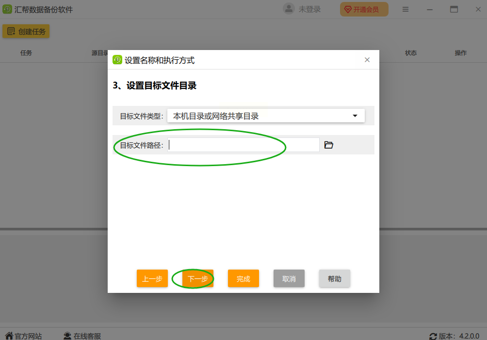 - 目标文件夹:选D盘的"项目备份"文件夹