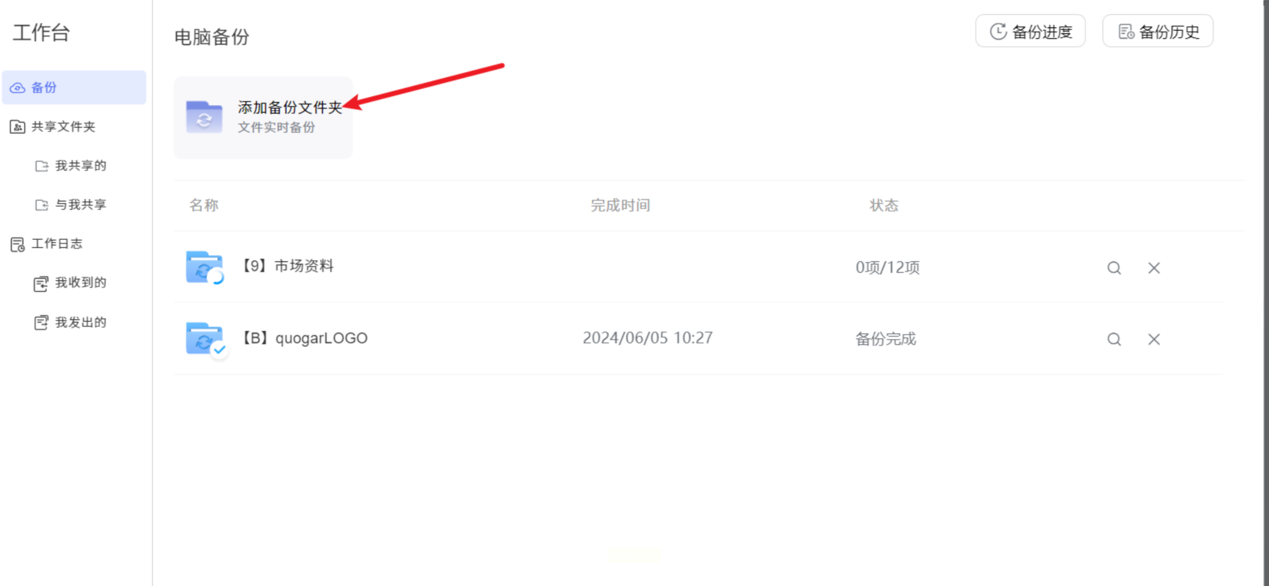 点击「添加备份文件夹」,从本地硬盘选择要备份的文件夹(比如“我的照片/旅行相册”),也可以直接拖文件夹到窗口里。