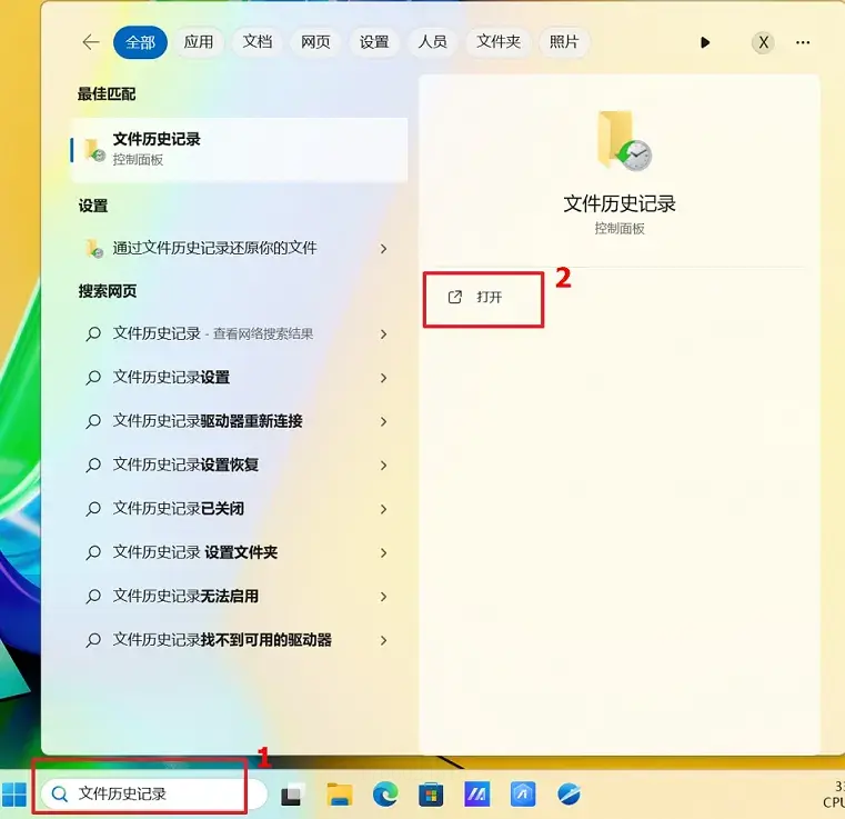 1. 打开文件历史记录:在Windows搜索框里输入"文件历史记录"(Win10用户直接搜"备份设置"也行),点"打开"就进入设置界面了。