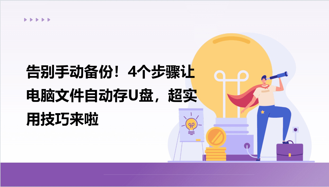 嘿,同事们!最近好多人问我:“电脑里的重要文件怎么才能高效地传到U盘啊?” 每次都要一个个文件拖来拖去,又慢又容易出错,简直让人头大!其实啊,现在有好几种超简单的方法,不管是手动操作还是用软件,都能让你告别重复劳动。今天我就把自己常用的4个方法全部分享出来,保证新手也能一看就会,赶紧拿出小本本记下来吧!