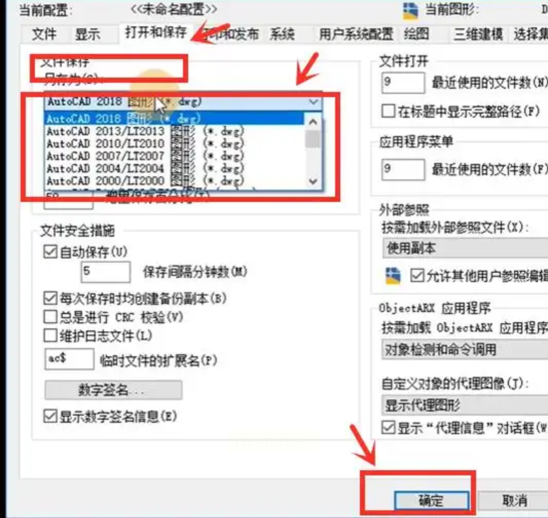 - 低版本选项通常在列表上方,比如“AutoCAD 2000 DWG”“AutoCAD 2004 DWG”“AutoCAD 2007 DWG”等