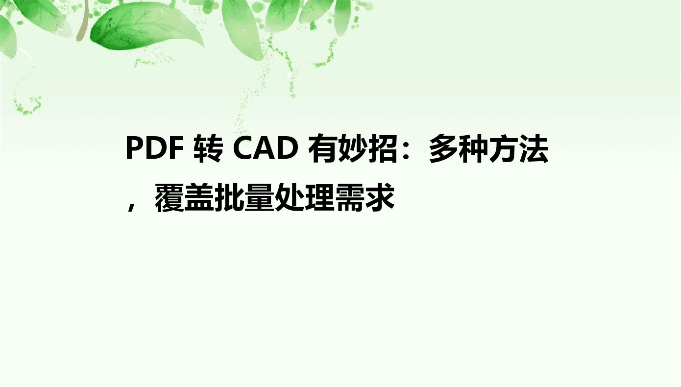掌握PDF到CAD的转换技术相当于获得了设计修改的自由度。八种方法各具特色,专业软件在精度控制上表现突出,在线工具在便捷性上更具优势,而集成在常用软件中的功能则减少了学习成本。根据图纸复杂度、使用频率和精度要求选择合适方案,能够显著提升工作效率。在实际操作过程中,建议先使用简单图纸测试转换效果,熟悉流程后再处理重要文件。随着技术迭代更新,文件转换的精度和效率还在持续提升,保持对工具更新的关注也能获得更好的使用体验。无论是偶尔需要还是专业应用,这些方法都能帮助你在设计工作中更加得心应手。