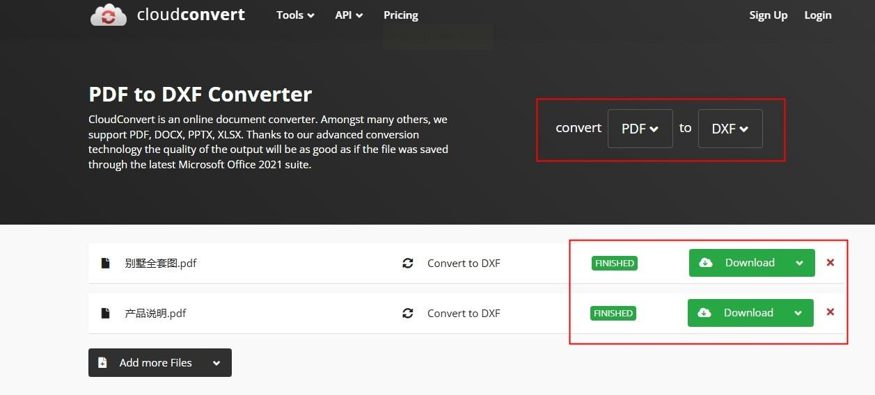 步骤二:这个平台支持将多种常见格式转换为DWG或DXF,允许同时上传多个文件进行批量处理。