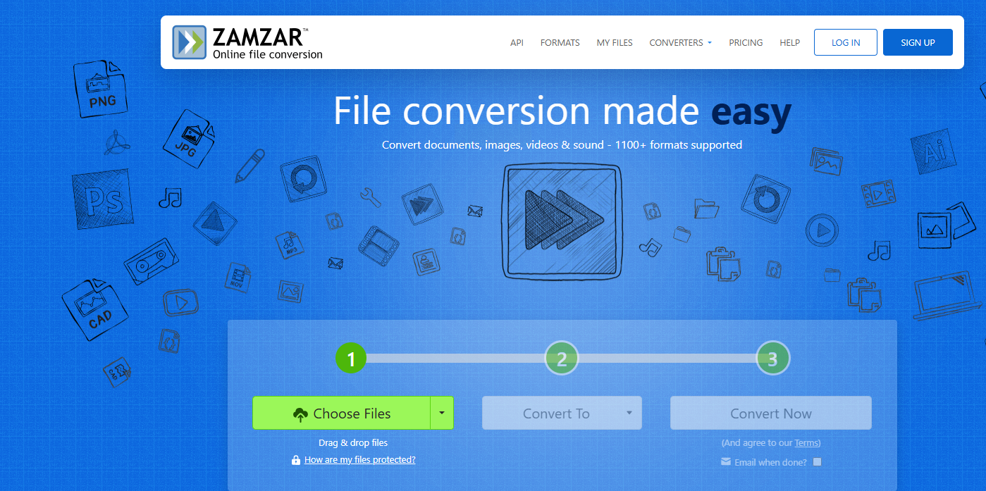 Zamzar是一个操作简单的在线转换工具,三步就能完成转换。