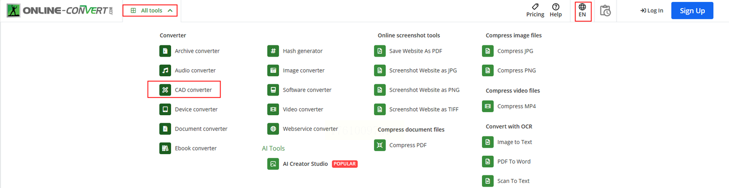 步骤一:打开网站后,点击“All tools”,找到“CAD converter”功能。