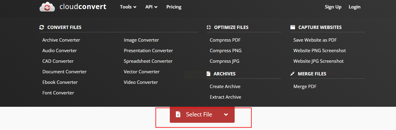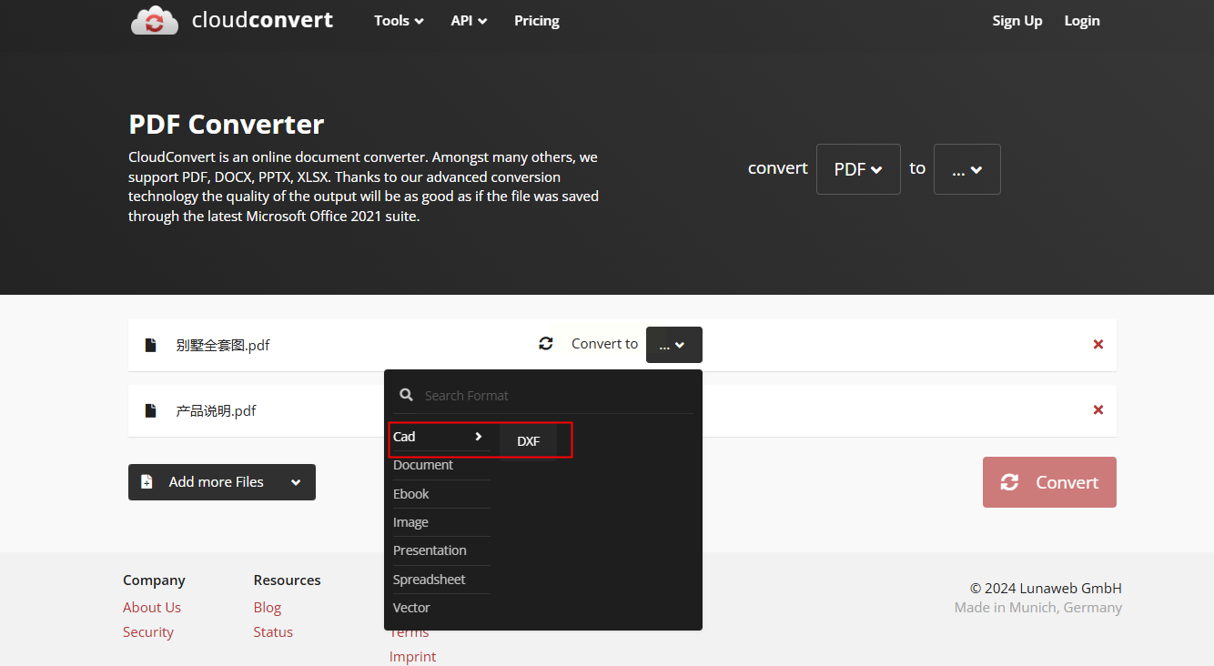 CloudConvert支持超过200种文件格式的转换,PDF转CAD也是其功能之一。