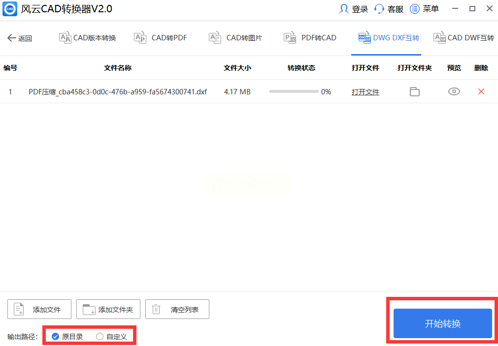 步骤三:添加好文件后,软件会自动识别出它们的格式。你只需要在页面下方,选择一个用来保存转换后DXF文件的文件夹位置。