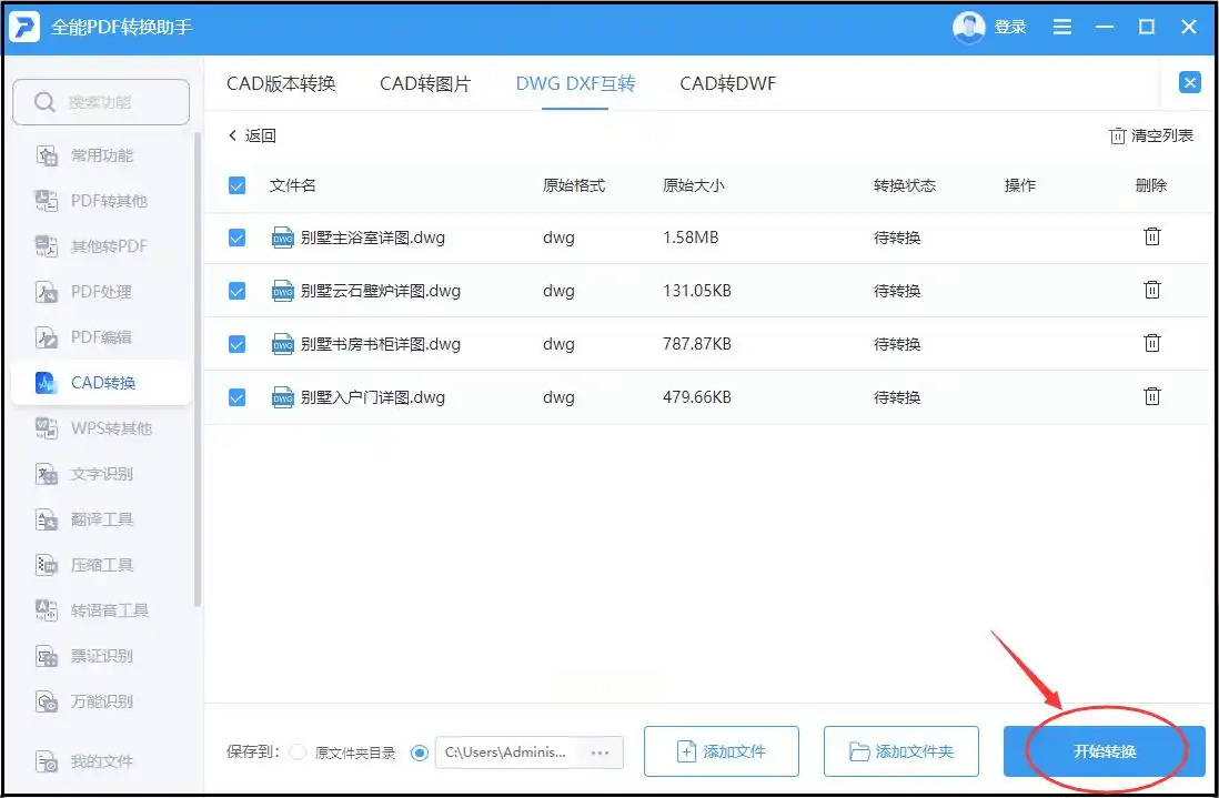 步骤二:添加DWG格式的CAD文件至转换列表。