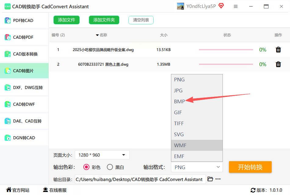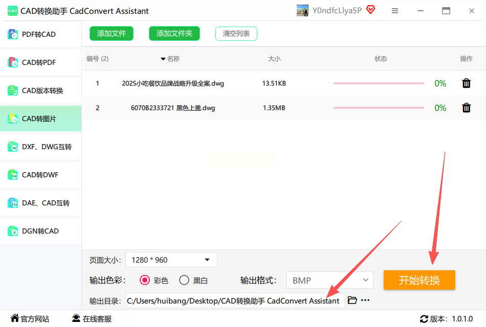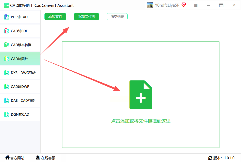 1. 启动CAD转换助手,在左侧功能栏选择“CAD转图片”,右侧上传区域支持拖拽或点击导入文件,适配日常dwg转图片需求。