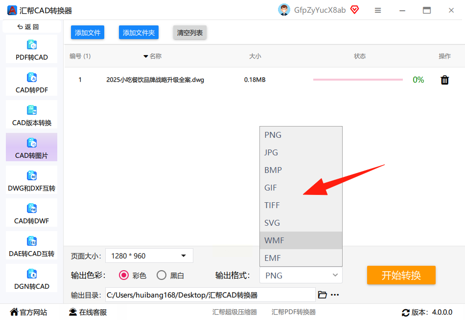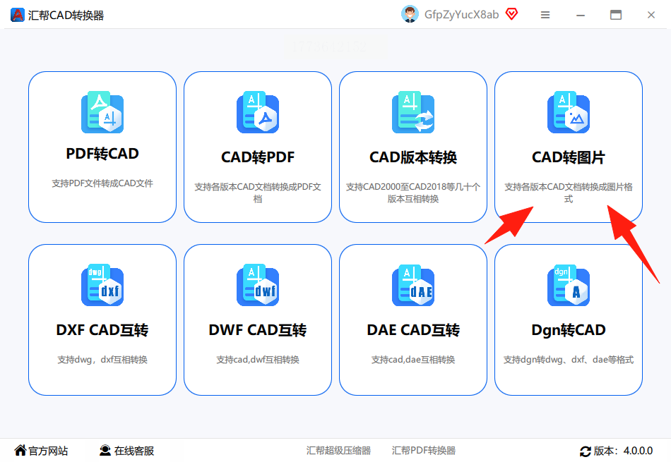 1. 打开汇帮CAD转换器,在主界面选择“CAD转图片”功能模块,这是最省心的dwg转图片工具。