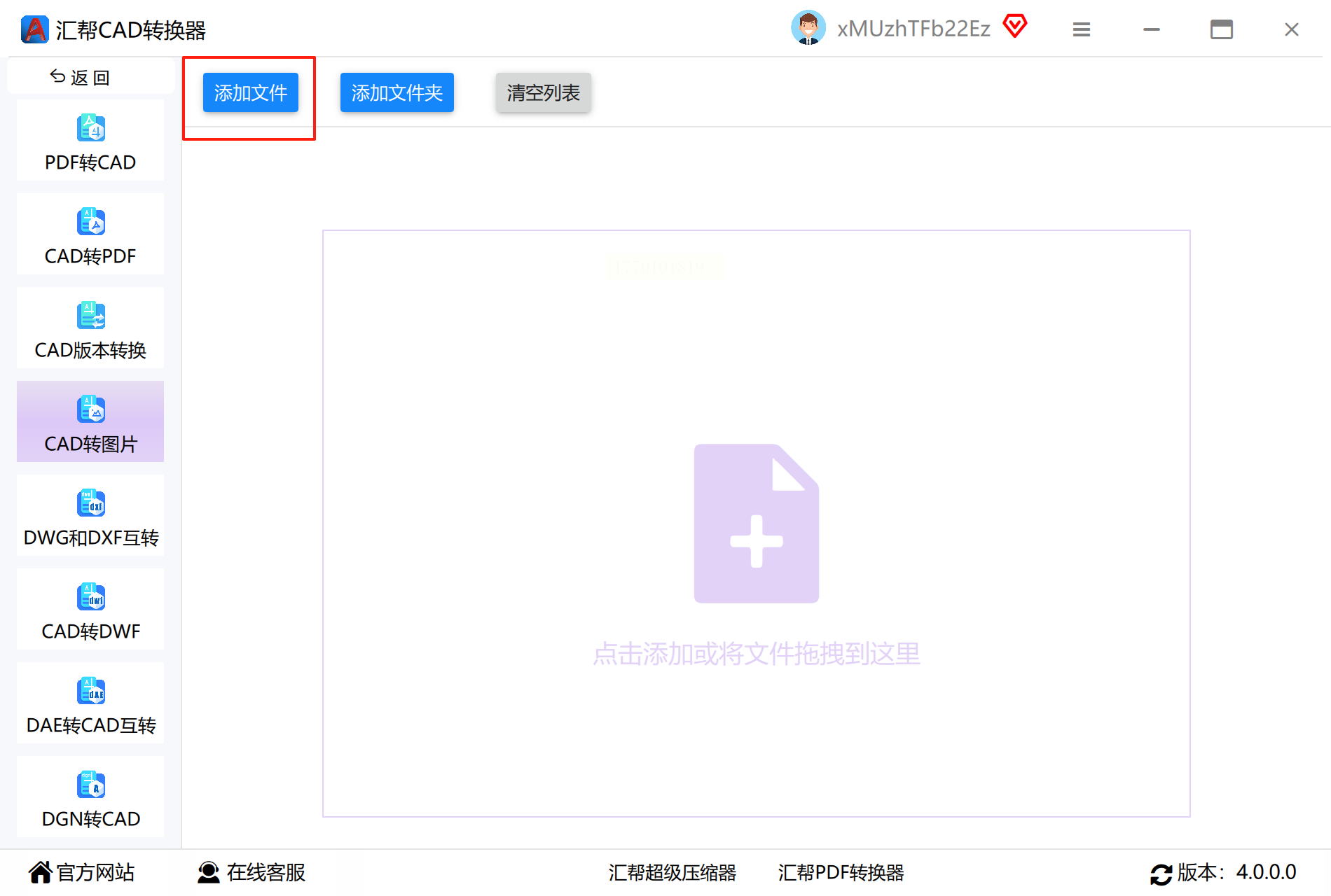 - 点击“添加文件”按钮,支持拖放操作(可同时选10张以上图纸)