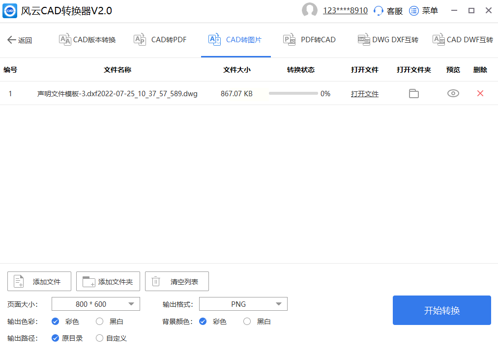 点击“开始转换”,文件会自动按设置生成,转换速度取决于图纸复杂度和电脑配置,一般30秒内完成。