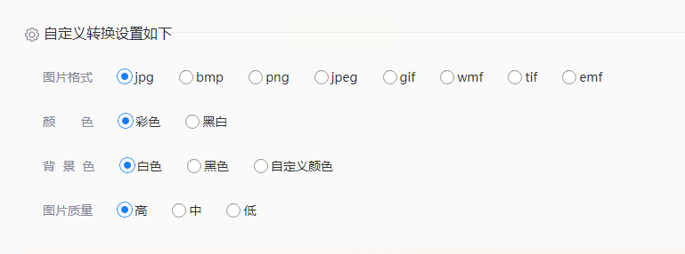 步骤二:根据需要设置图片格式、颜色、背景色和质量参数。