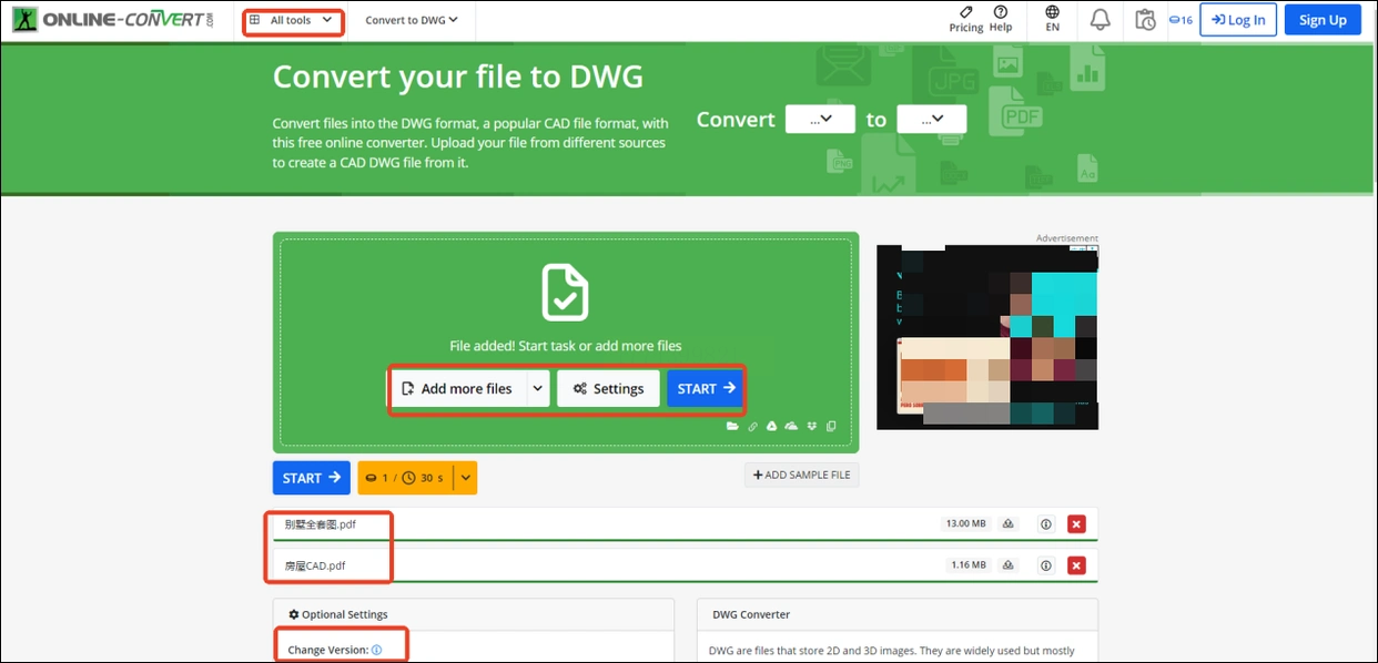 2. 点“CAD converter”→“Convert to DWG”