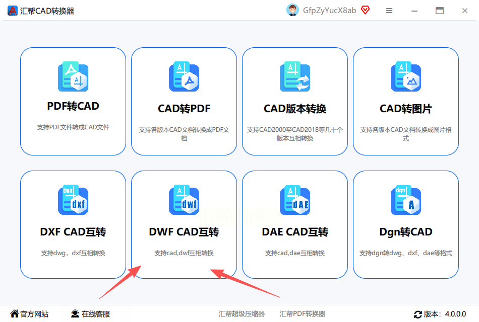 首先需要去官网下载汇帮CAD转换器,安装完成后打开软件。在主界面中找到"DWF CAD互转"模块并点击进入。