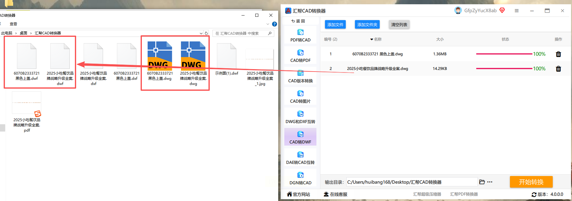 选择"CAD转DWF"功能后,在下方设置好保存路径,点击"开始转换"按钮,软件就会自动处理文件转换。