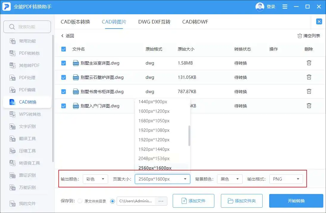 设置完成后,指定本地输出文件夹,点击“开始转换”按钮。软件会自动处理文件,转换过程中可实时查看进度,完成后自动生成图片文件,原始CAD文件会保留在源目录。