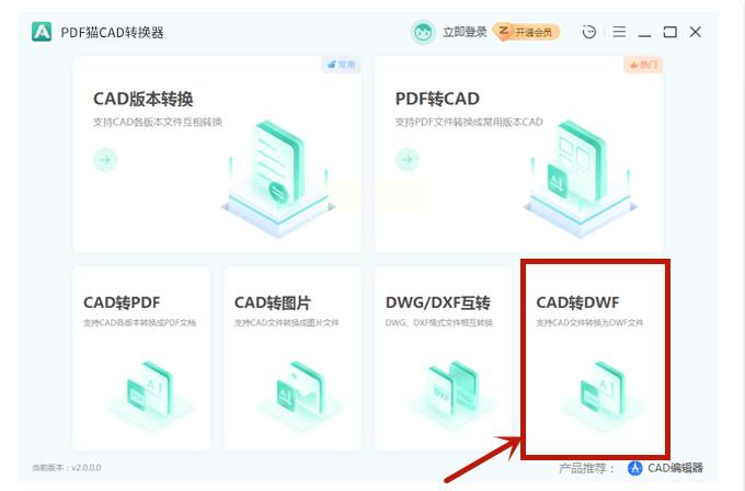 步骤一:在软件首页找到“CAD DWF转换”功能。这个功能支持双向转换,你可以根据需求选择方向。