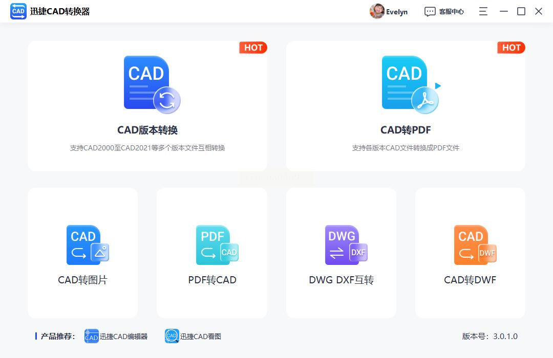 步骤一:打开迅捷CAD转换器,在主界面找到"DWF转CAD"功能卡片并点击进入。
