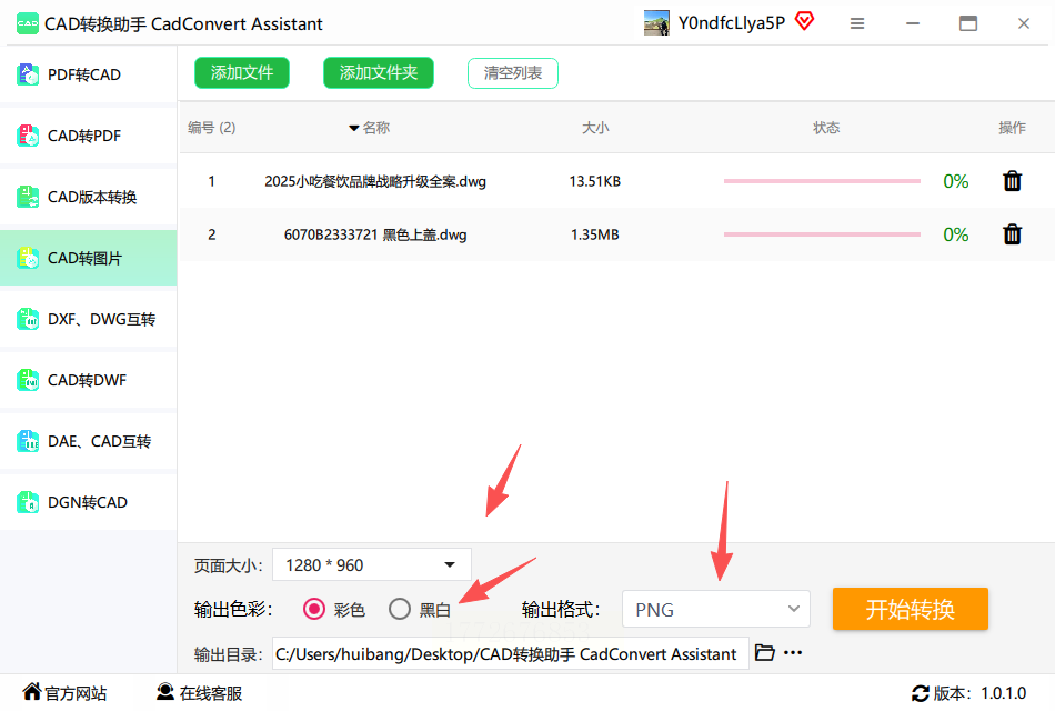 1. 打开CAD转换助手软件,点击主界面的"CAD转图片"选项