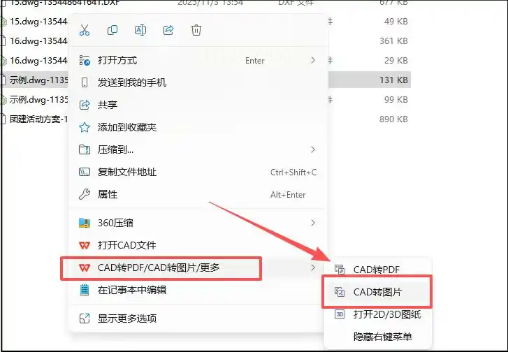 1. 右键点击CAD文件,在右键菜单中找到"CAD转图片"选项(需要WPS会员)