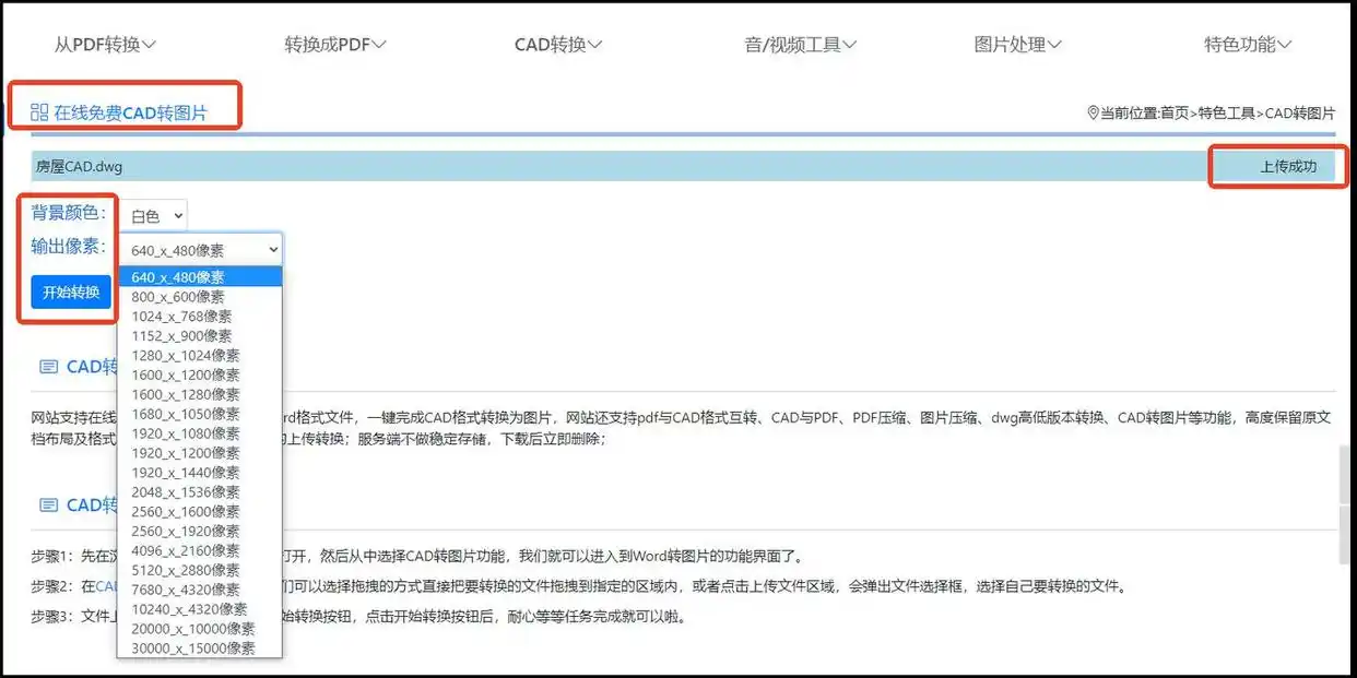 2. 在工具列表中找到"CAD转换"分类,点击"CAD转图片"功能