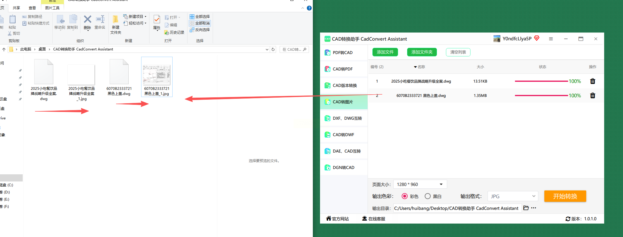 4. 点击"开始转换",稍等片刻(根据文件大小10秒到几分钟不等),转换完成后去输出目录找JPG图片