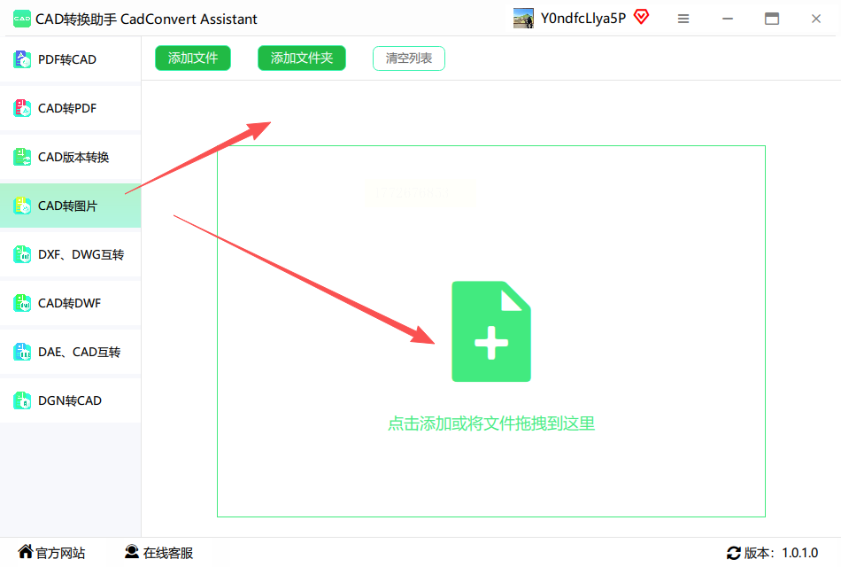 2. 点击左侧"添加文件",可以一次导入多个CAD文件(支持批量转换)