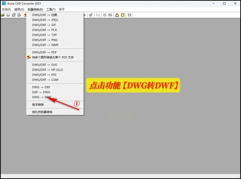 2. 在其中选择“CAD转DWF”的独立选项。