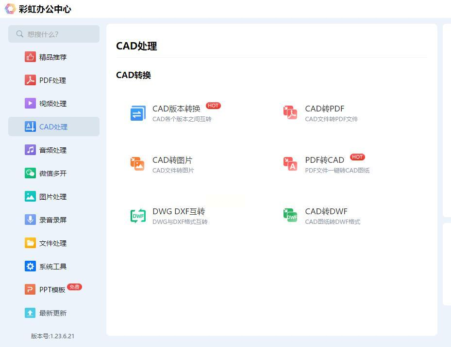 1. 启动软件,在左侧功能列表中找到“CAD处理”或“文件转换”大类。
