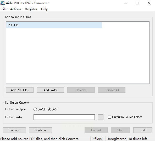 步骤一:启动软件后,选择“Convert PDF to DWG”主功能,界面左侧显示文件预览缩略图。