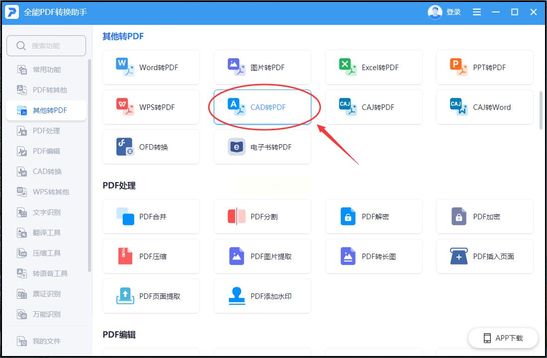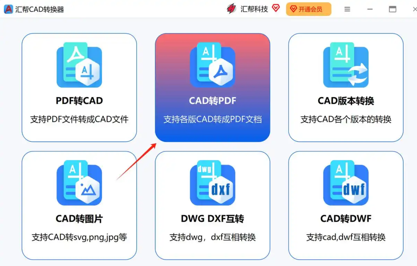 在主界面上方的功能菜单中,找到并点击“CAD转PDF”选项。这个功能模块会专门处理CAD图纸到PDF的格式转换,界面简洁且操作直观。