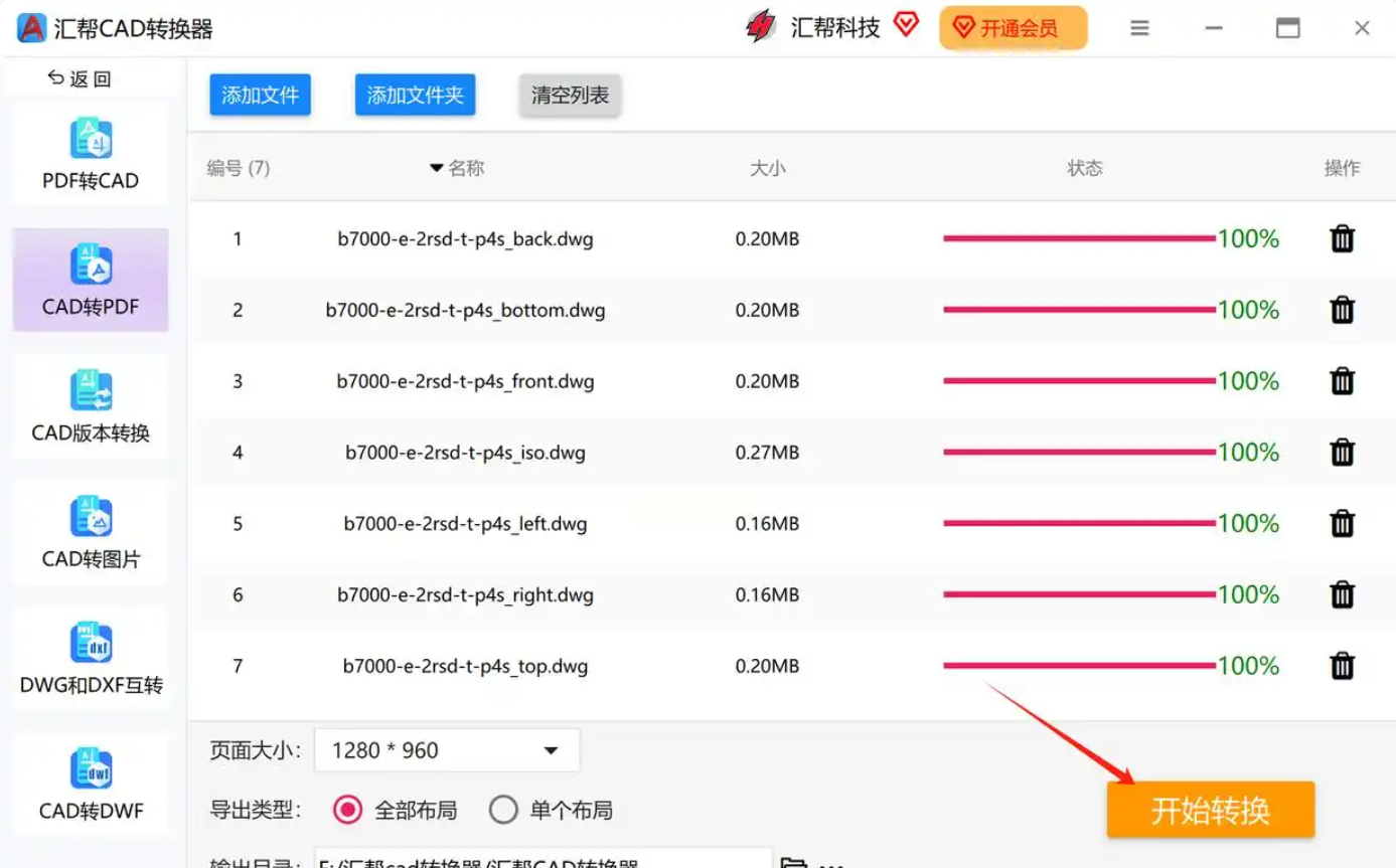 确认参数无误后,点击右下角的“开始转换”按钮。软件会显示每个文件的转换进度,进度条走完后,点击“打开文件夹”即可找到生成的PDF文件。通常转换后的PDF会和原CAD文件保存在同一目录下,方便查找。