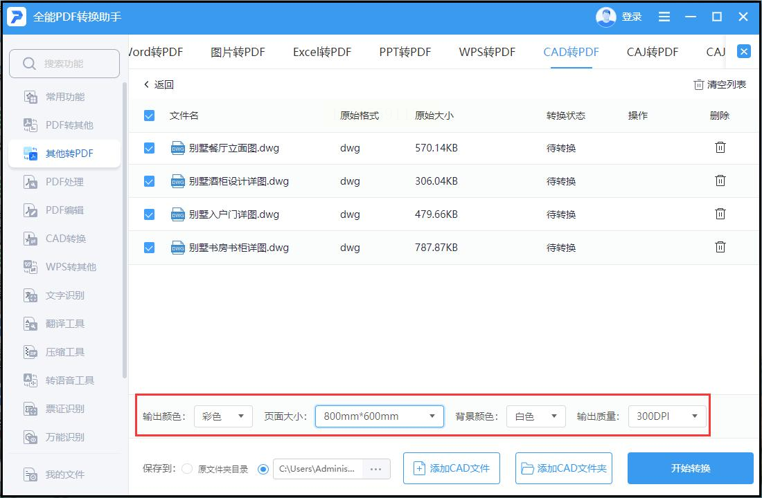 - 页面范围:如果CAD图纸有多个布局,可指定转换第几个布局(如仅转换布局1)