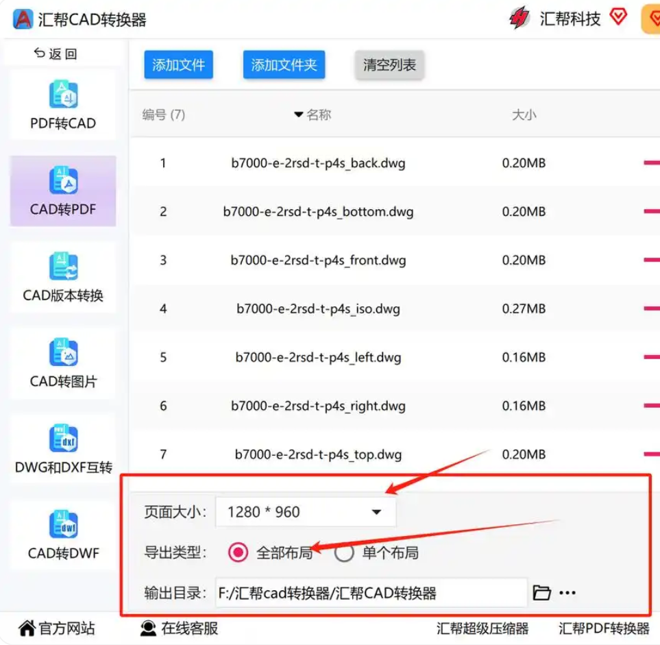 - 导出类型:选择“全部布局”(每个CAD图纸单独生成PDF)或“单个布局”(所有图纸合并为一个PDF)