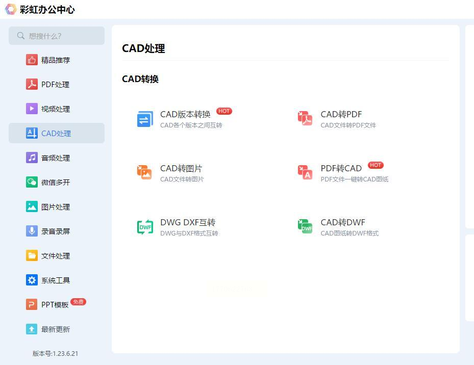 步骤一:启动软件后,你会看到清晰的功能分类。直接点击“CAD DWF互转”选项,进入转换界面。