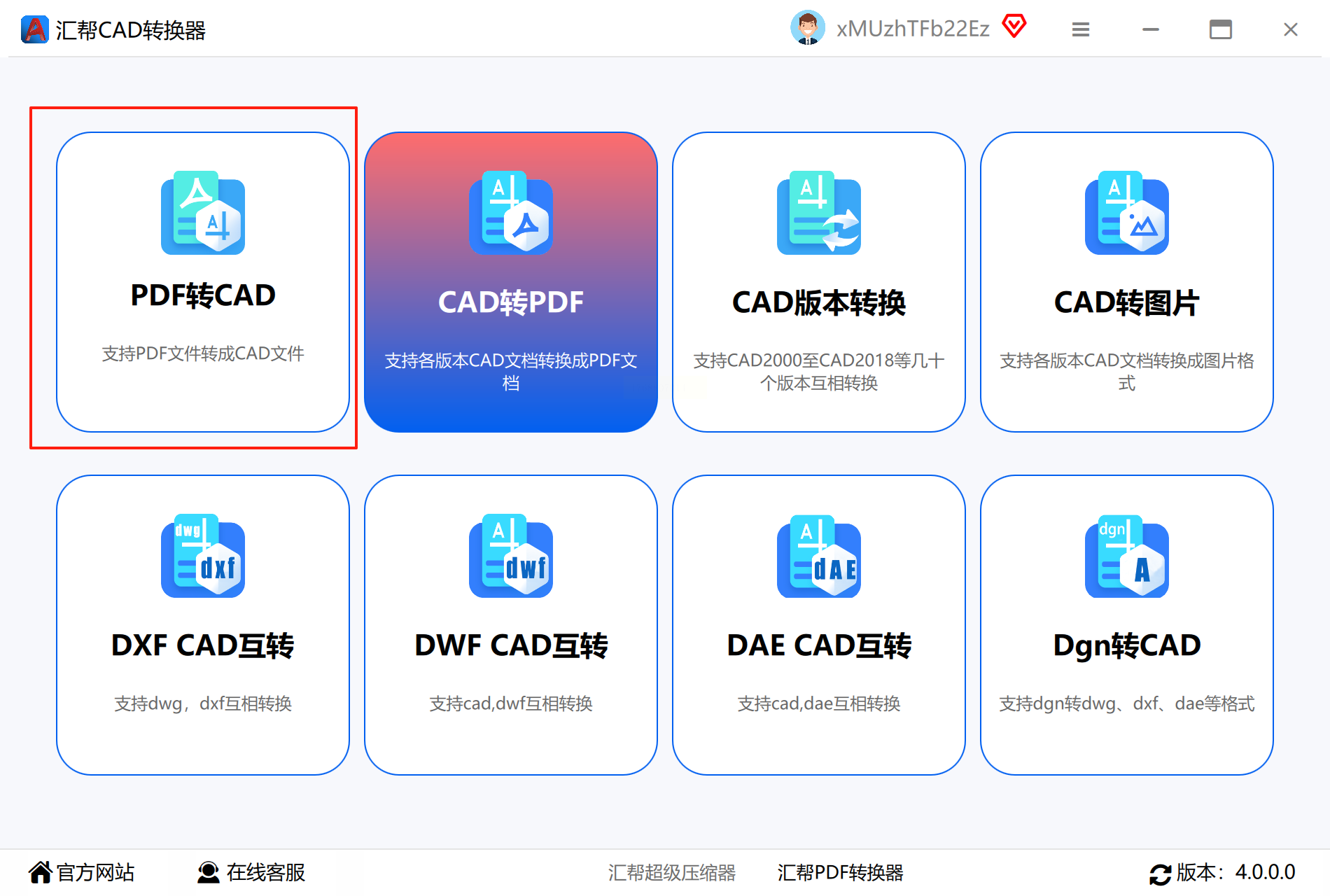 步骤一:启动软件后,在主界面找到并点击“PDF转CAD”功能模块。