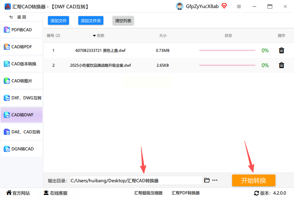 首先,从官网下载汇帮CAD转换器安装包并完成安装。打开软件后,在主界面左侧找到"格式转换"模块,点击进入后选择"DWF转DWG"专项功能。