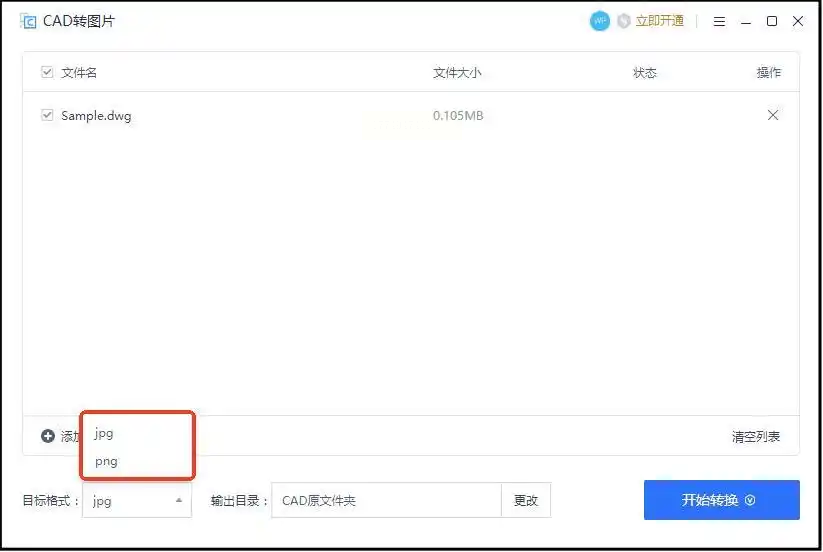- 点击【开始转换】,系统会自动在目标文件夹生成同名JPG文件,原始CAD文件会保留备份。
