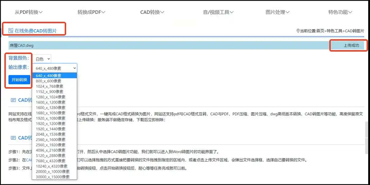 步骤一:启动软件后,在首页选择【CAD转图片】功能模块。
