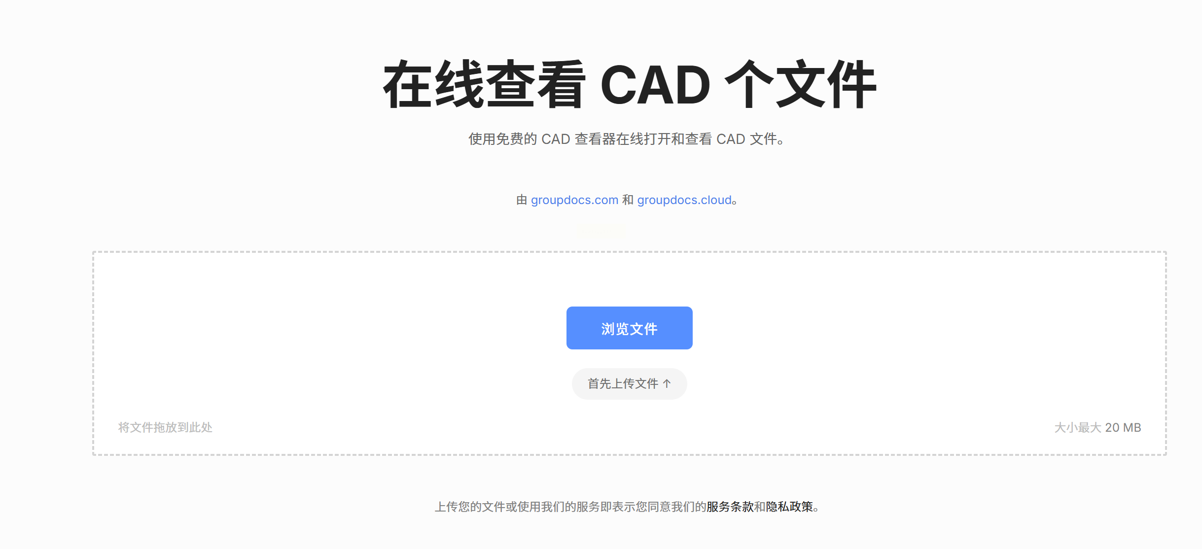步骤三:点击“上传”或“选择文件”按钮,从本地设备中选取需要转换的CAD文件。请注意网站对单个文件大小的限制。