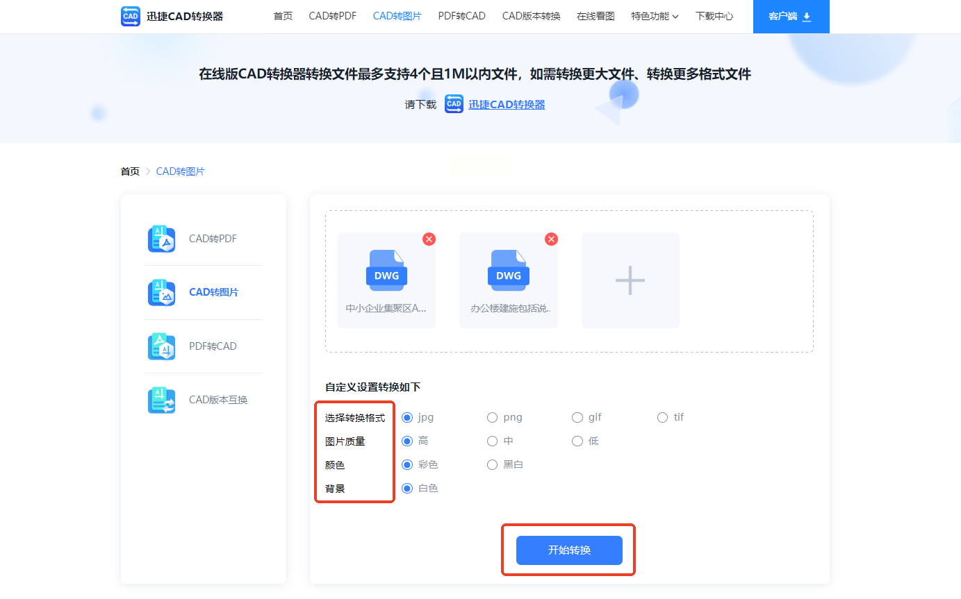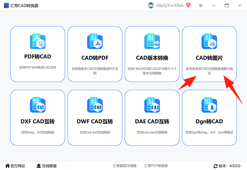 步骤二:在首页找到“CAD转图片”功能入口,点击进入转换页面。